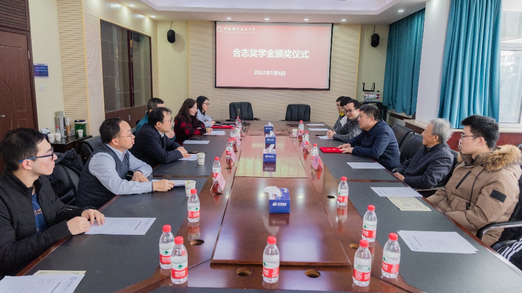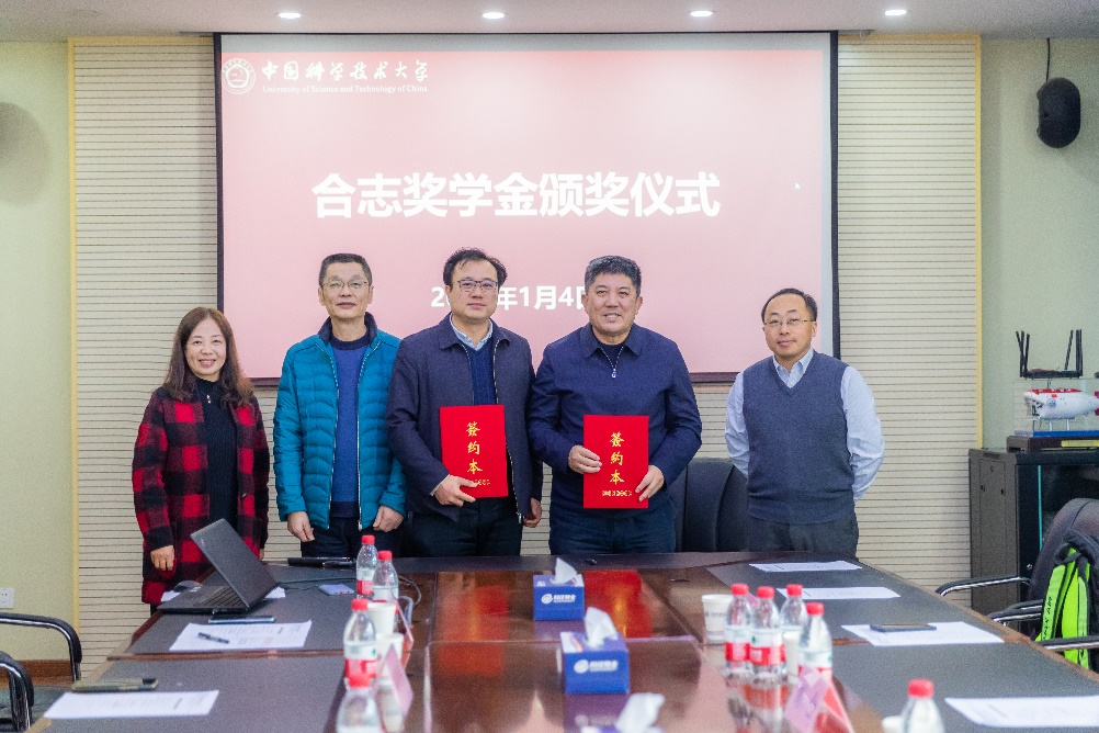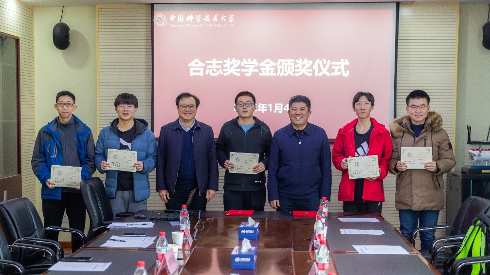 牟玲宣读了2021年“合志奖学金”表彰决定,刘合院士为2021年获奖的5名大二学生颁发了获奖证书并合影留念。