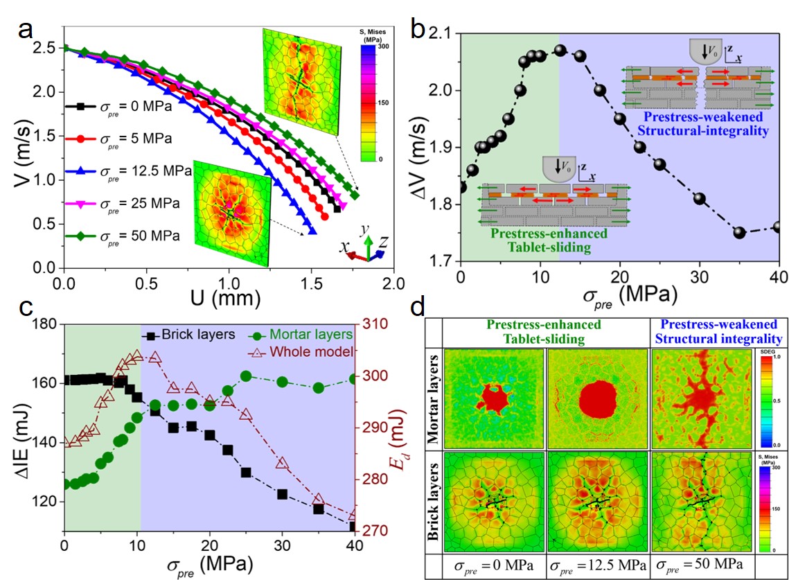 1.复杂失效过程模拟分析预应力策略对仿珍珠层结构抗冲击性的影响
