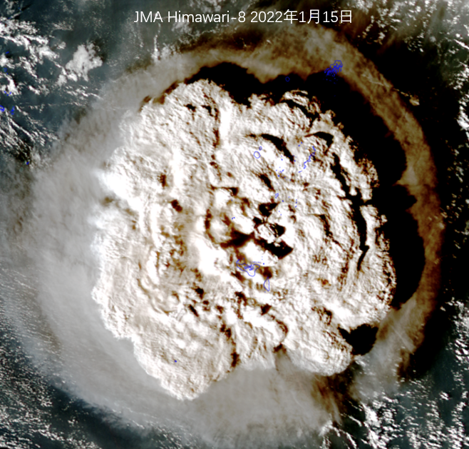图 1 日本葵花-8卫星观测汤加火山喷发真彩图