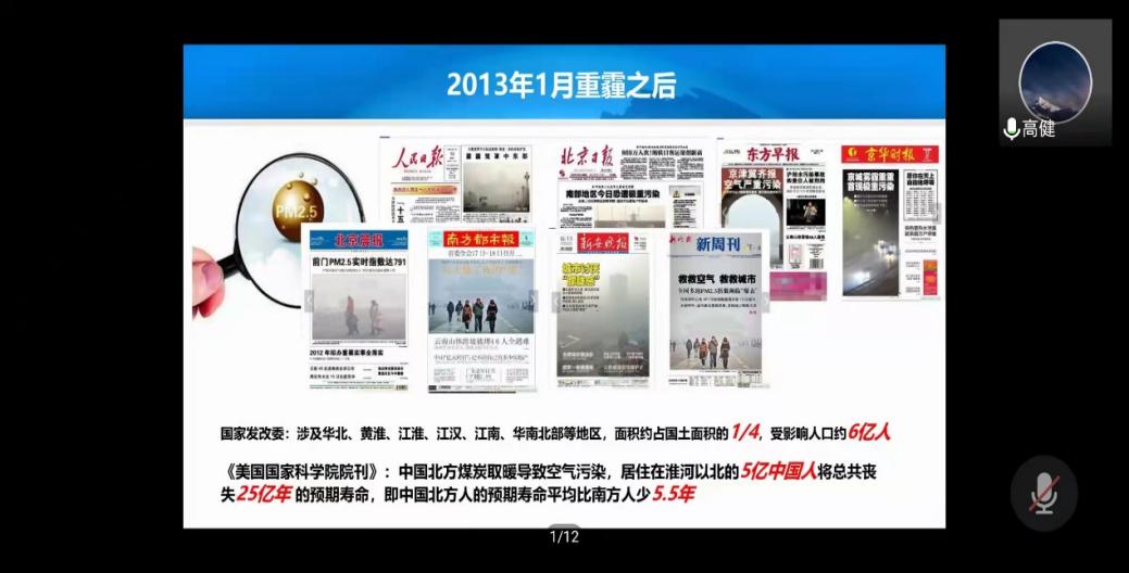 12月20日上午9点,中国环境科学研究院大气所副所长高健受邀做线上学术报告,报告题目为“大气污染防治攻坚战的理论、实践与展望”,报告由工程开元(中国)精密仪器与精密机械系执行主任刘诚教授主持。