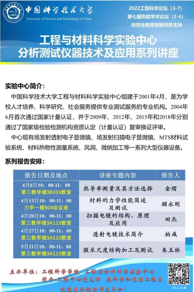 为使师生对实验室仪器设备的正确使用和维护方法有更深入的了解,提高设备资源的使用效率,为实验结果的准确提供保障,从而提高科研成果产出效率,工程与材料科学实验中心和院办-工程中心党支部联合举办“分析测试仪器技术及应用”系列讲座,本次活动也是党支部扎实开展“支部特色年”活动的重要内容。