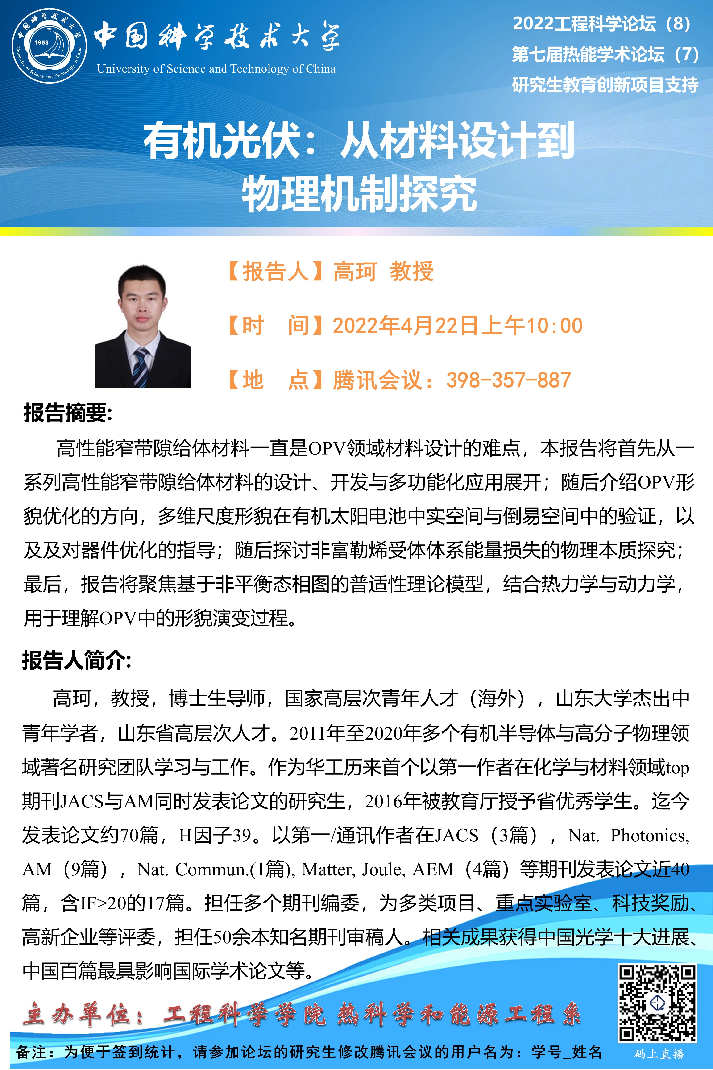 2022工程科学论坛(8)“有机光伏:从材料设计到物理机制探究”