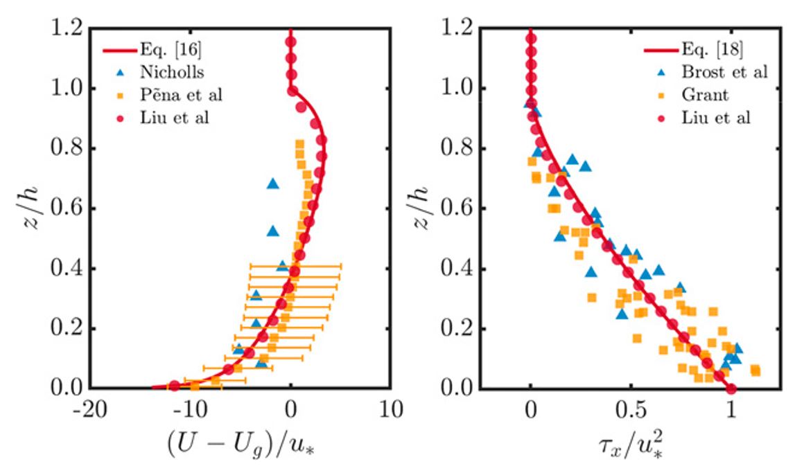 针对上述挑战,刘罗勤特任研究员系统研究了常规中性大气稳定度条件下大气边界层的结构,首次给出了在整个大气边界层中均成立的速度、风向、湍流剪切力的解析表达式,并借助于大涡模拟结果和大气观测数据验证了该理论模型的正确性。由于常规中性大气边界层常出现在海上、大型湖泊上方,以及日落后的过渡期或大风多云时的陆地上空,以上最新理论进展对于风能应用、天气预报、气候模拟等领域都具有重要的研究意义和应用价值,同时也将有助于进一步研究不同大气稳定度条件下的大气边界层结构。