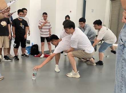 研究生阶段随着科研工作的不断深入,同学们心理压力逐渐增大。为缓解大家的心理压力,班委听取了同学的提议,进行了为期一周的策划准备,组织开展了本次以心理健康为主题的团建活动,设计了“一圈到底”、“双腿夹纸”、“共同取水”、“六人乒乓”等项目。