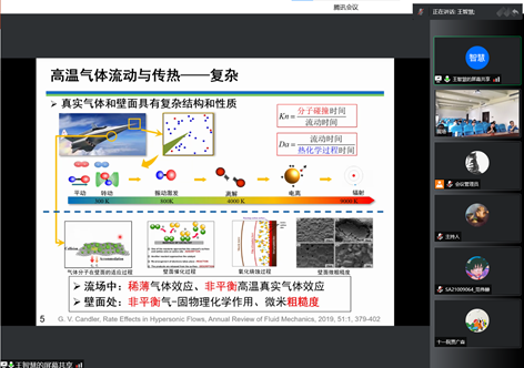 交流提问环节,线上或线下参与报告的同学们同王智慧教授就流动相似性等问题进行了更加细致深入的讨论。本次报告还通过腾讯会议进行了实时直播。