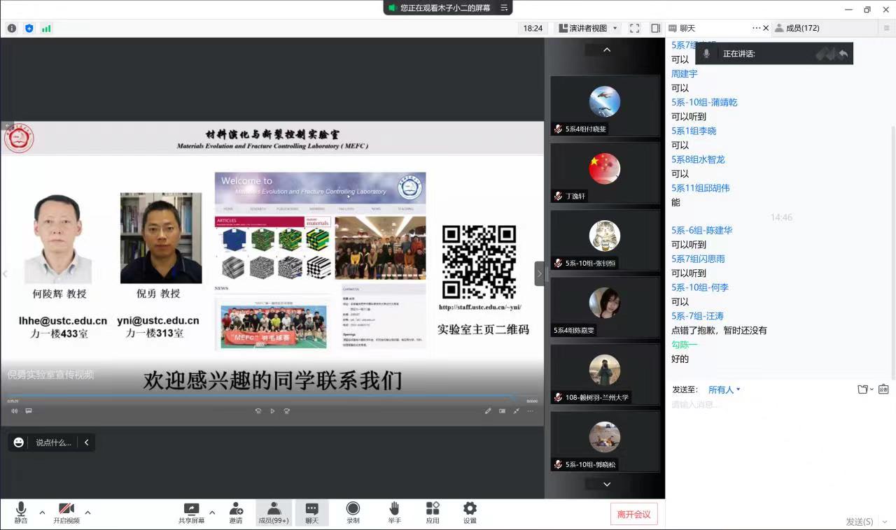 在力学、仪器、能源分会场中,各位老师就自己的研究方向、研究进展、科研团队及研究成果向营员做了细致全面的介绍,营员们通过认真观看学术报告,对不同的研究领域有了更直观的了解,对自己兴趣所在也更加了然于胸。此次夏令营加深了营员们对知识的渴望与追求,对加入工程科学开元(中国)这个大家庭充满了憧憬。