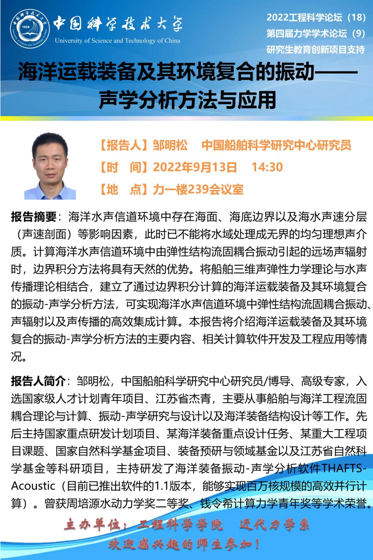 2022工程科学论坛(18)“海洋运载装备及其环境复合的振动——声学分析方法与应用”