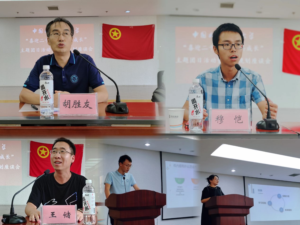 学涯规划座谈会上,胡胜友老师结合多年工作经验和自身孩子成长经历,以家长的口吻与同学们分享了在科大学习生活的几点建议。他强调,作为一名大一新生,要敢于“清零”高中时期的成绩与光环,正视大学学习生活中的挑战与困难,调整好心态再出发;要在追求学习进步的同时,勇于追求政治上的进步,做一名积极向党组织靠拢的优秀学子;要积极融入班集体,敞开心扉与同学交流学习,建立良好的人际关系;要培养独立学习和解决问题的能力,不断提升自身的国际视野,立志做一名科技报国的科大人。穆恺老师结合自身在科大多年的学习成长经历,从身份转变、心态调整、专业选择、人生规划等四个角度为同学们作交流分享。他勉励同学们要珍惜大学时光,不断扩充知识,锻炼独立思考的能力、努力成长为堪当民族复兴重任的时代新人。王储老师通过自己的一个小故事生动地阐释了集体的重要意义,他还鼓励同学们读好生活的大书,在社会实践中锤炼技艺。倪子珺学长与邢一诺学姐分别从课余活动和学习方法等角度作经验分享。