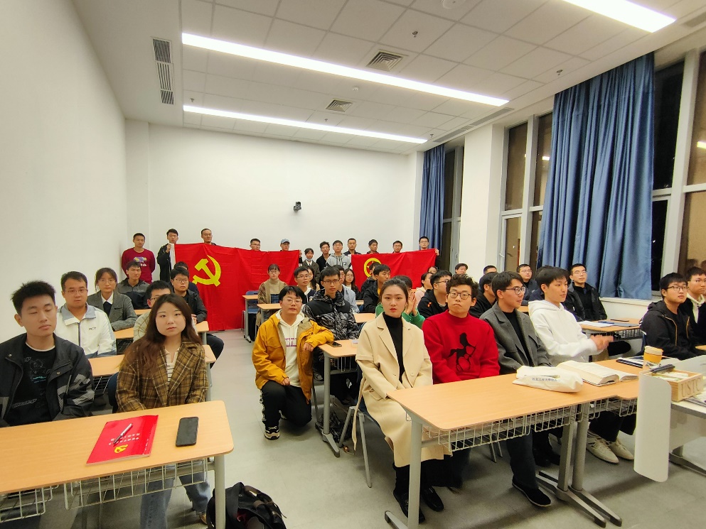 11月13日晚,近代力学系、精密机械与精密仪器系和热科学和能源工程系2022级硕士生党支部联合校学生骨干培训班于高新校区GTB103教室通过线上与线下相结合的方式开展了“学习二十大 奋进新征程”主题党日活动,近代力学系党总支书记吴燕峰老师线上出席活动。活动由近代力学系2022级硕士生党支部书记周睿主持。
