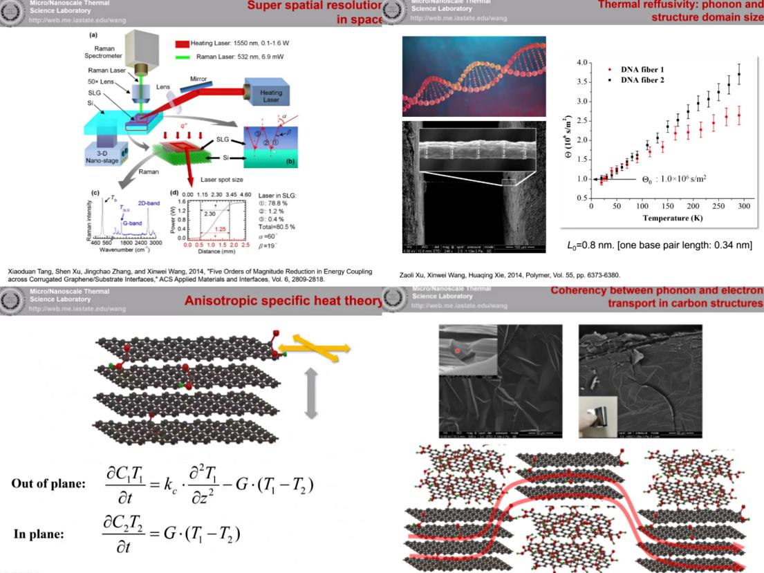 Dr. Xinwei Wang is the Anson Marston Distinguished Professor and Wilkinson Professor in Interdisciplinary Engineering at Iowa State University (http://web.me.iastate.edu/wang). He obtained his Ph.D. from the School of Mechanical Engineering, Purdue University in 2001, M.S. (1996) and B.S. (1994) from the University of Science and Technology of China. Over the past 20 years, he has led his laboratory to develop new techniques for characterizing thermal transport at the micro/nanoscale, including the TET, ET-Raman, TD-Raman, and FR-Raman techniques. His lab reported the first work on distinguishing the optical and acoustic phonon temperatures under intense photon excitation, and determining their energy coupling factor. His work on conjugated phonon and hot carrier transport represents the first accomplishment in distinguishing these two physical processes and quantifying their transport diffusivities. The thermal reffusivity theory developed in his lab provides a novel way to characterizing material’s structure domain size, similar to that measured by x-ray diffraction, but has unique applications for nanomaterials. He received the inaugural Viskanta Fellow Award of Purdue University in recognition of his pioneering and independent work in thermal sciences. He is the recipient of the Mid-career Award for Research (2014) and Award for Outstanding Achievement in Research (2018) from ISU. He is the Fellow of ASME and Associate Fellow of AIAA. He serves as the senior and associate editor of four international journals and is on the editorial board of five journals.