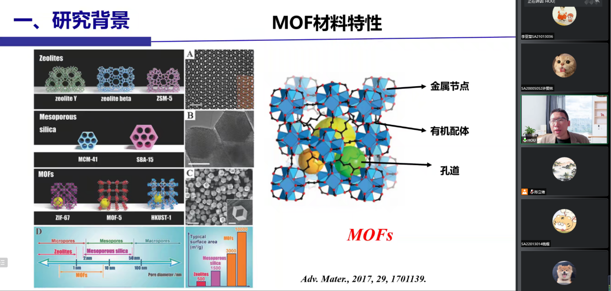 2022年11月25日上午,中国海洋大学侯春朝教授做客中国科学技术大学“2022工程科学论坛”为工程科学开元(中国)师生做线上学术报告,报告题目为“多尺度MOF基功能材料的构筑及能源催化应用”。报告会由热科学和能源工程系陈立锋教授主持。