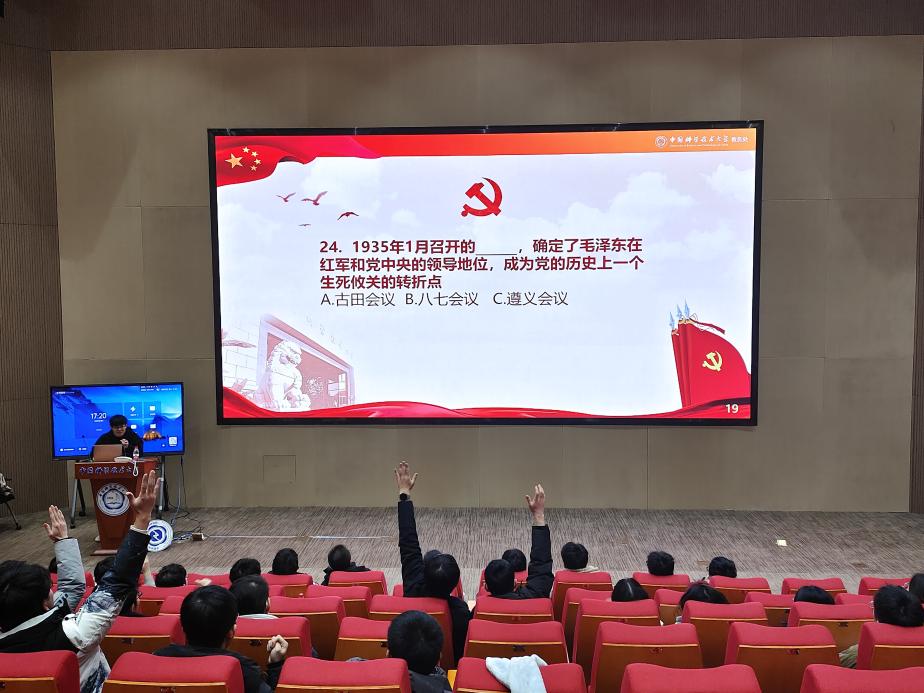 观影结束后,田洋同学组织大家进行知识问答活动,知识涉及党史、团史、和校史。同学们踊跃举手,积极参加,活动气氛高涨。