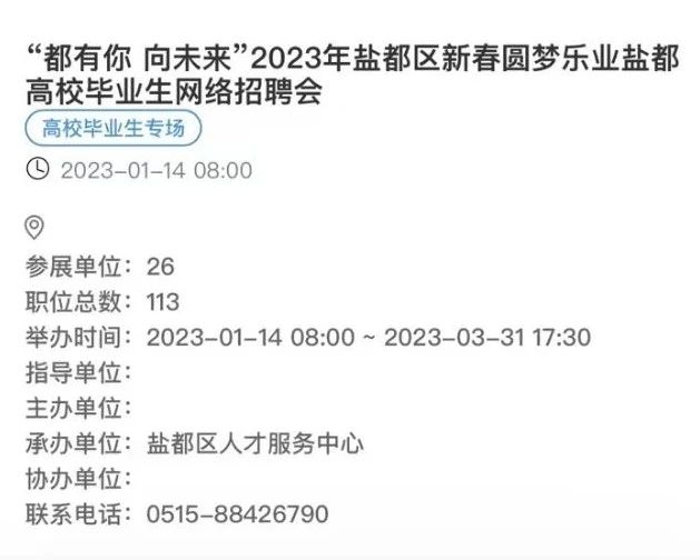 2023年新春圆梦乐业盐都高校毕业生云聘会