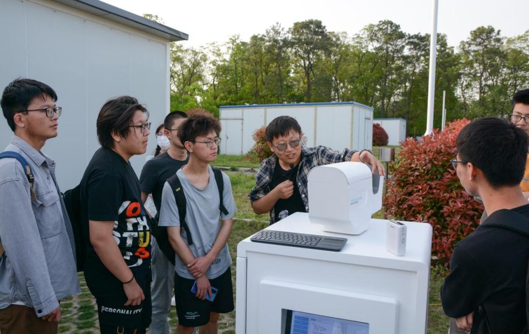 随后,同学们参观了安光所环境光学综合观测实验场、全球碳柱总量观测网(TCCON)中科院安光所高分辨FTS观测平台等国际先进的环境探测设施。实验室的工作人员向同学们介绍了实验室部分仪器以及工作原理,并现场演示了超光谱大气成分立体分布遥测仪、高分辨率傅里叶红外光谱仪等设备的操作流程。