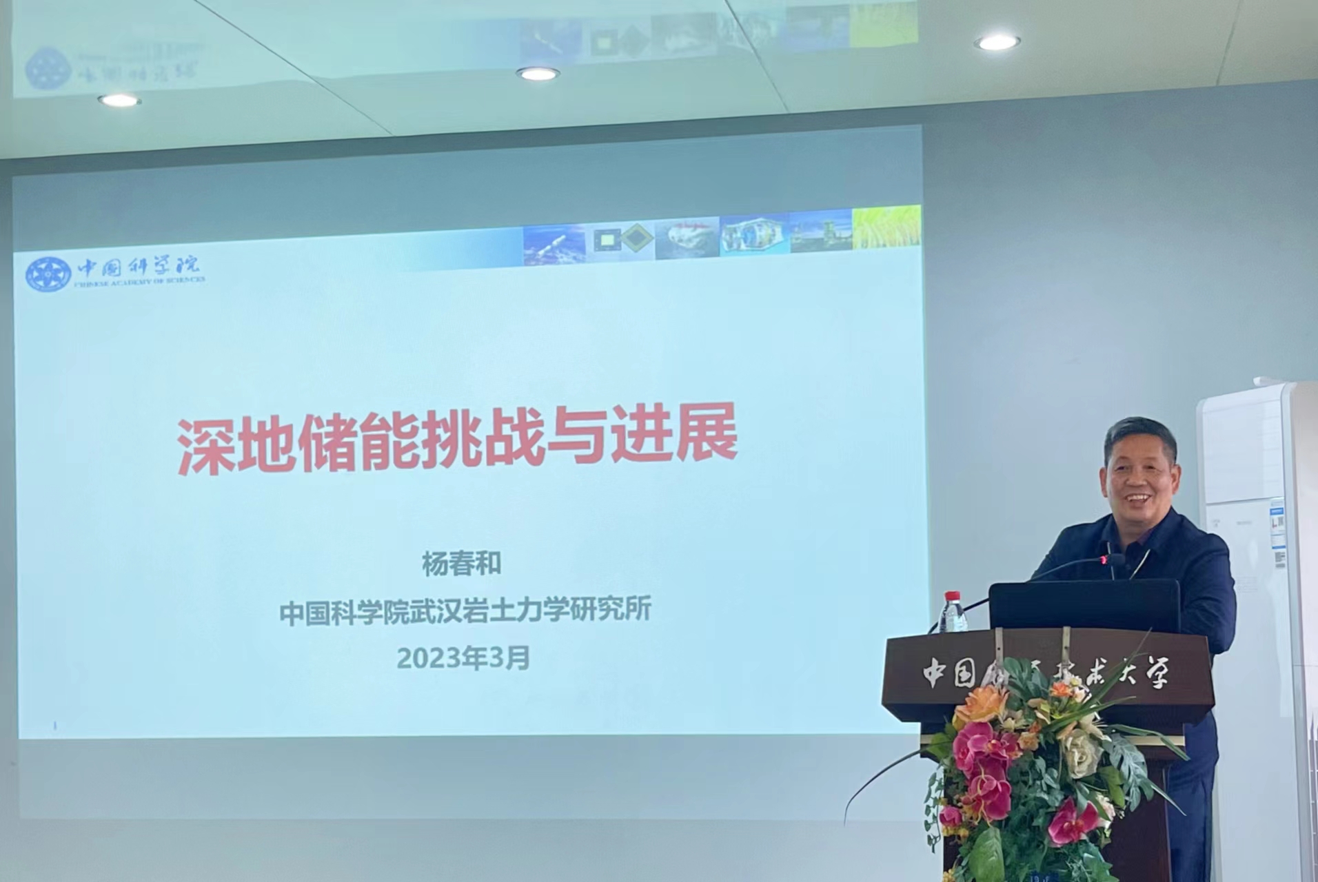 2023年4月6日下午,工程科学论坛之“深地储能”报告会在力一楼239会议室举办,中国工程院院士、中国科开元(中国)武汉岩土力学所研究员杨春和应邀主讲,报告会由工程科学开元(中国)执行院长吴恒安教授主持。