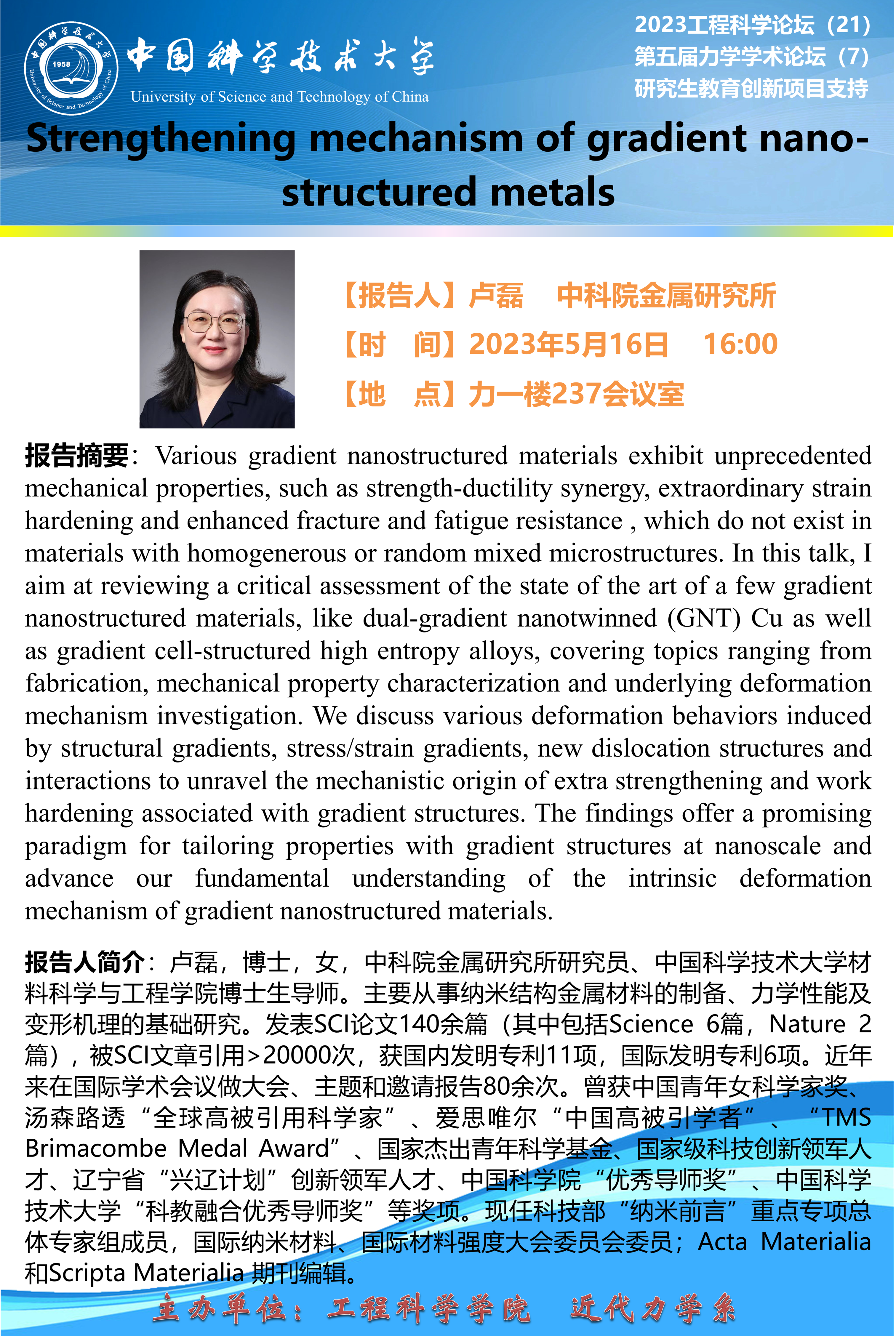 2023工程科学论坛(21)“Strengthening mechanism of gradient nano-structured metals”