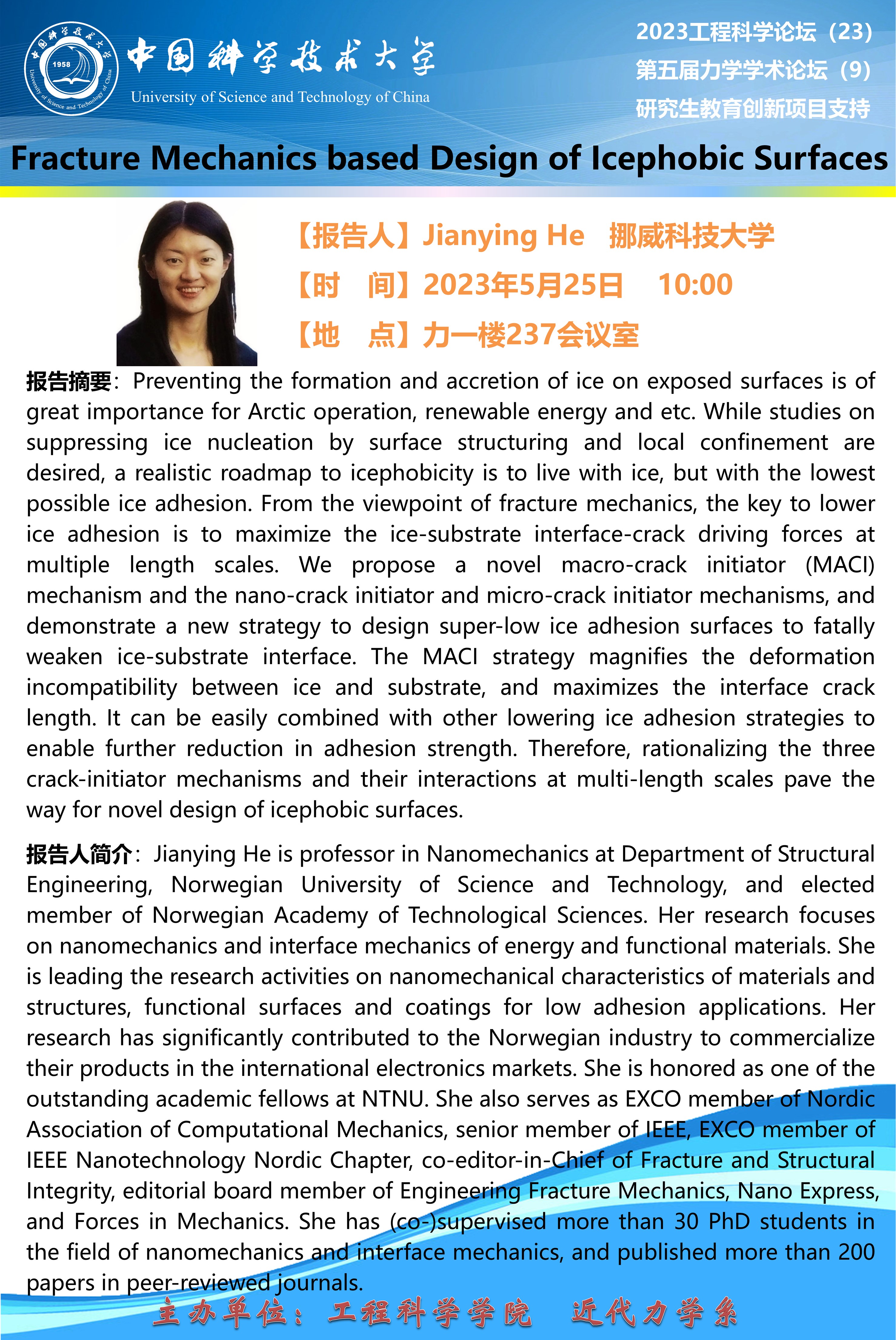 2023工程科学论坛(23)“Fracture Mechanics based Design of Icephobic Suifaces”