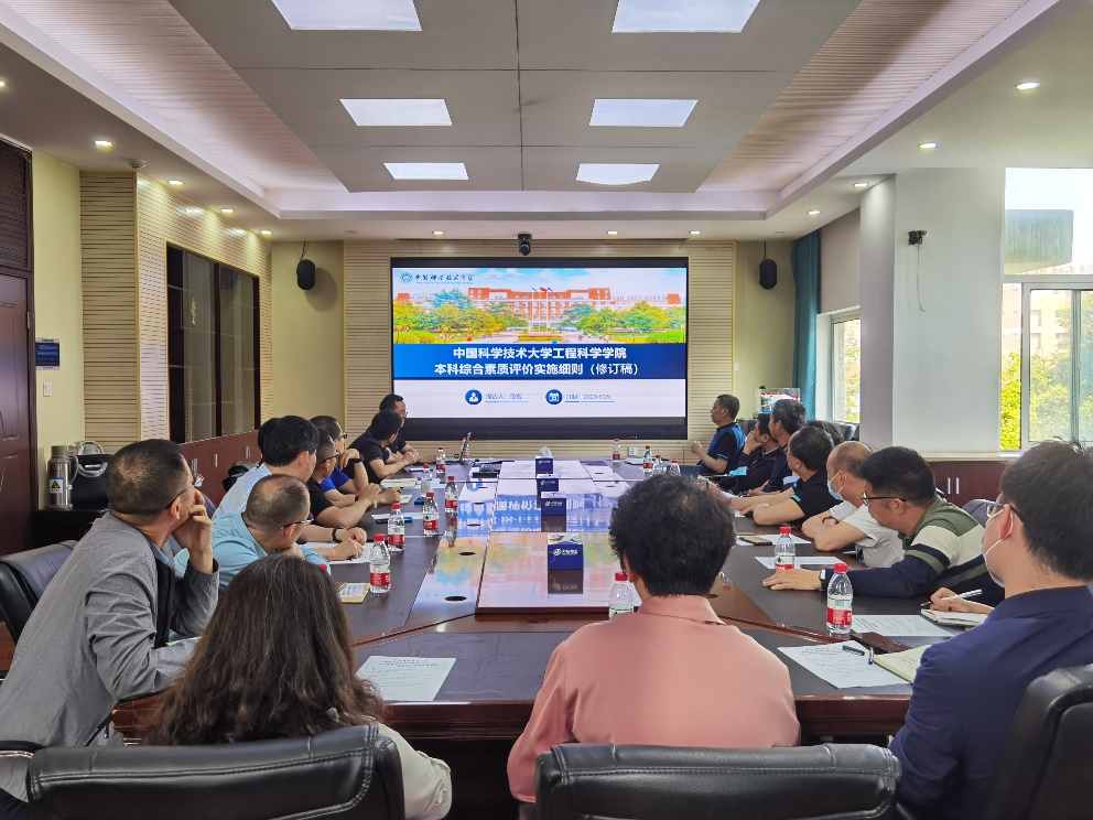 院党委副书记牟玲就加强新闻审核、网站信息发布等意识形态领域重点需要关注的问题做了要求和提醒。2021级本科一班班主任范煜向与会人员介绍了《工程科学开元(中国)本科生综合素质评价实施细则(修订)》的修订过程,就具体条目的内容进行了说明。