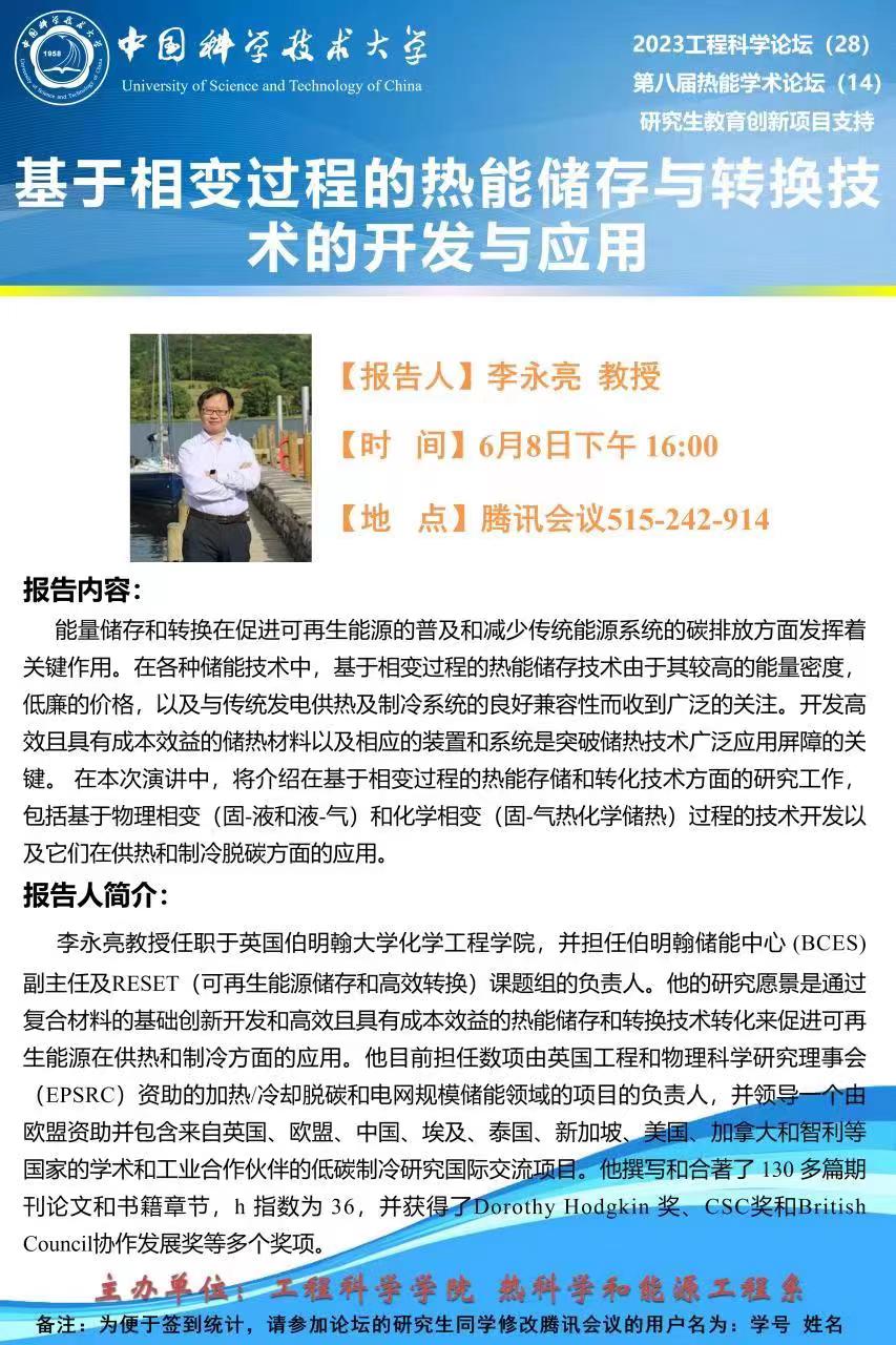 2023工程科学论坛(28)“基于相变过程的热能存储与转换技术的开发与应用”