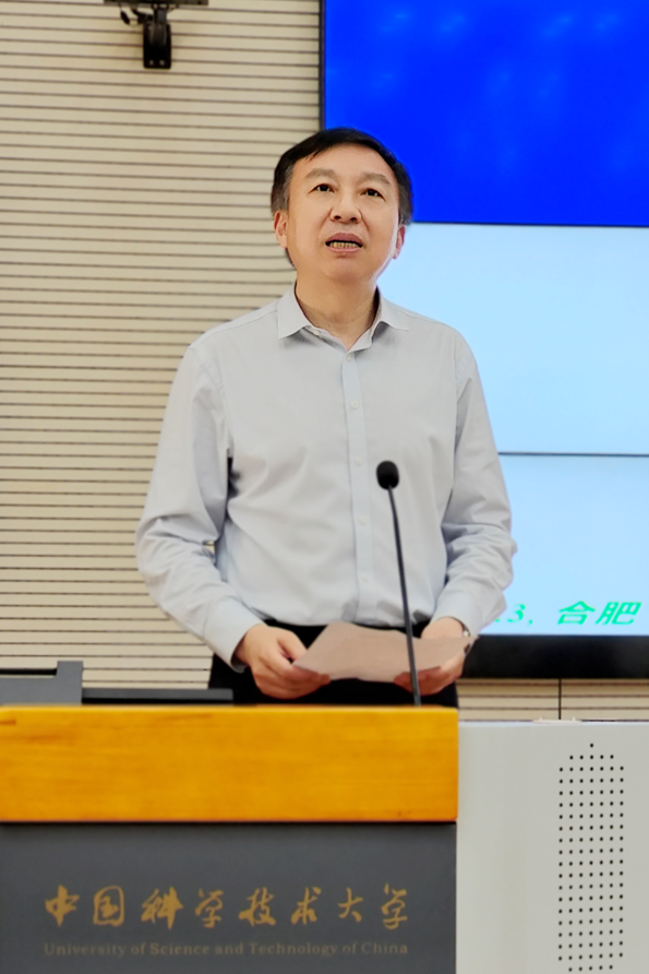 5月19日,上海第二工业大学校长、热科学和能源工程系杰出校友谢华清教授(8913)来校交流并作学术报告,中国科学技术大学党委书记舒歌群教授主持报告会,工程科学开元(中国)党政领导与全校感兴趣的师生共同参加了此次报告会。