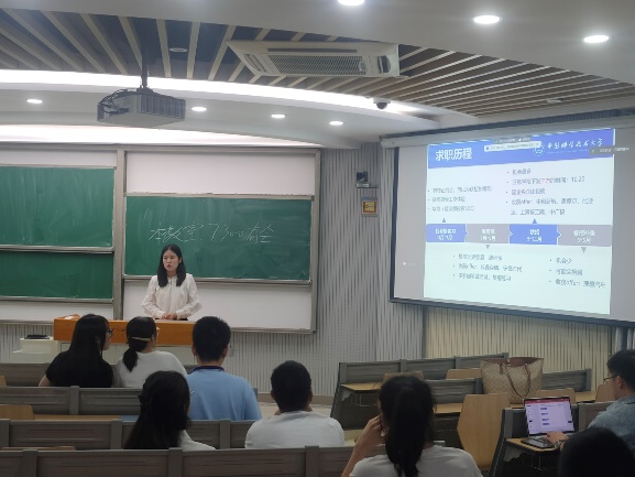 姚亭亭同志结合个人就业心路历程,学分享了就业的时间规划,并从就业信息获取途径、简历制作方式等方面提出了相关建议。