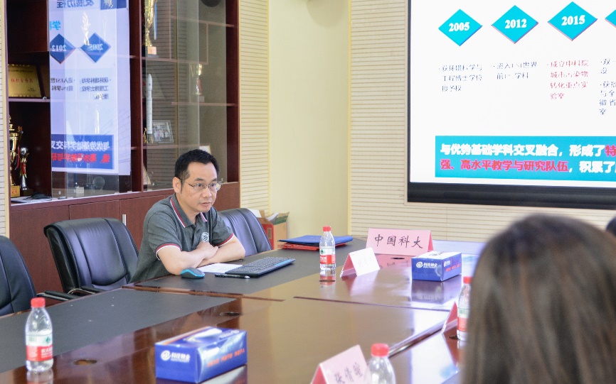 签约仪式之后,双方就产学研合作进行了座谈交流。谢周清教授从组织结构、研究方向、平台建设、师资队伍、科研成果、人才培养等方面全面介绍了环境科学与工程系的基本情况。