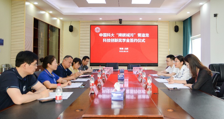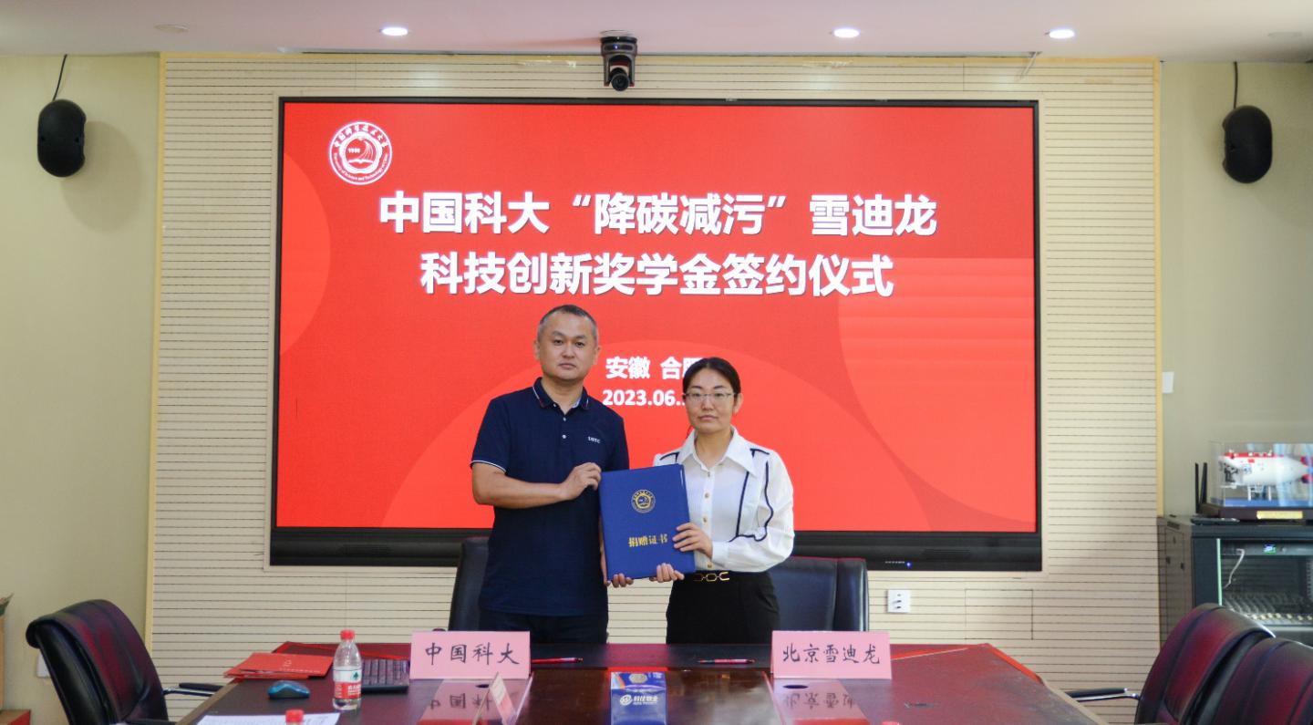 6月16日上午9时,中国科学技术大学“降碳减污”雪迪龙科技创新奖学金签约仪式在我校力四楼会议室举行。北京雪迪龙科技股份有限公司(以下简称“北京雪迪龙”)研发中心经理兼总工办主任张倩暄、人事部高级经理李蕊等一行三人,我校对外联络与基金事务处副处长、校友(总)会秘书长赵林,校党委学工部副部长、学生处副处长金顺玉,环境科学与工程系副主任谢周清,工程科学开元(中国)精密机械与精密仪器系执行主任刘诚出席签约仪式。仪式由工程科学开元(中国)党委副书记牟玲主持。