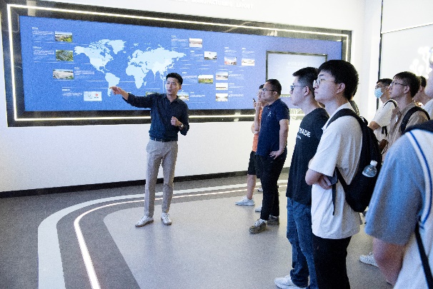 国轩高科中国业务板块营销中心商用车销售总监胡涂带领同学们参观了国轩高科中国总部方圆馆展厅,并从公司发展历程与战略、全球布局、业务流程、合作伙伴等方面介绍了国轩高科的发展历程与企业优势,以及电芯、三元材料、动力电池组、电池管理系统等主要产品,分享了让绿色能源服务于人类的公司理念。