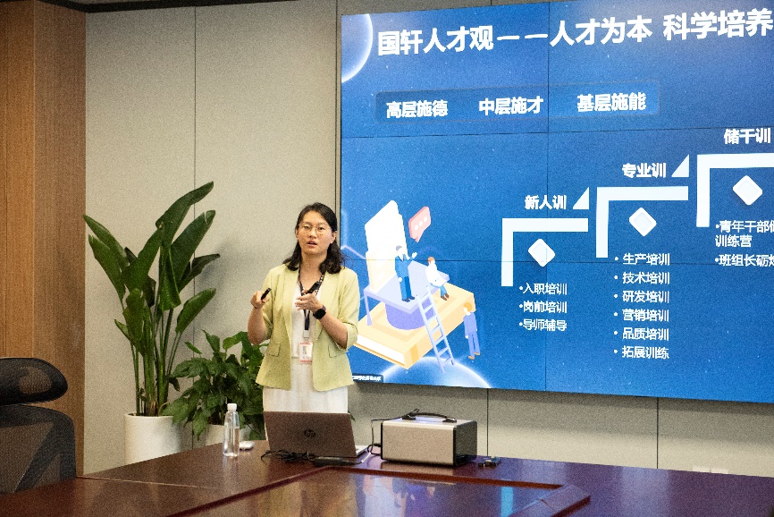 国轩高科中国业务板块总裁办公室中国业务HRBP高级经理薛晨菁从雇主品牌、职业规划、岗位类别为同学们介绍了国轩高科的运营模式、良好的工作环境,以及丰富的实习岗位。