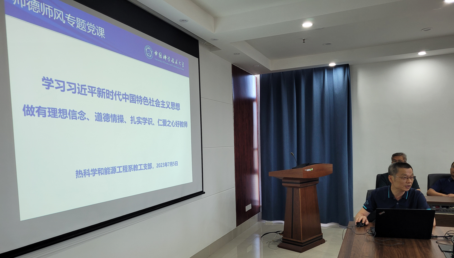 根据学校开展师德师风建设活动的通知,7月5日下午,热科学和能源工程系教工党支部在力学五楼1001会议室开展了师德师风建设主题党日活动,院党委书记刘明侯作师德师风建设专题报告,支部全体党员、全系教工参加了会议,系主任、支部书记谈鹏主持会议。