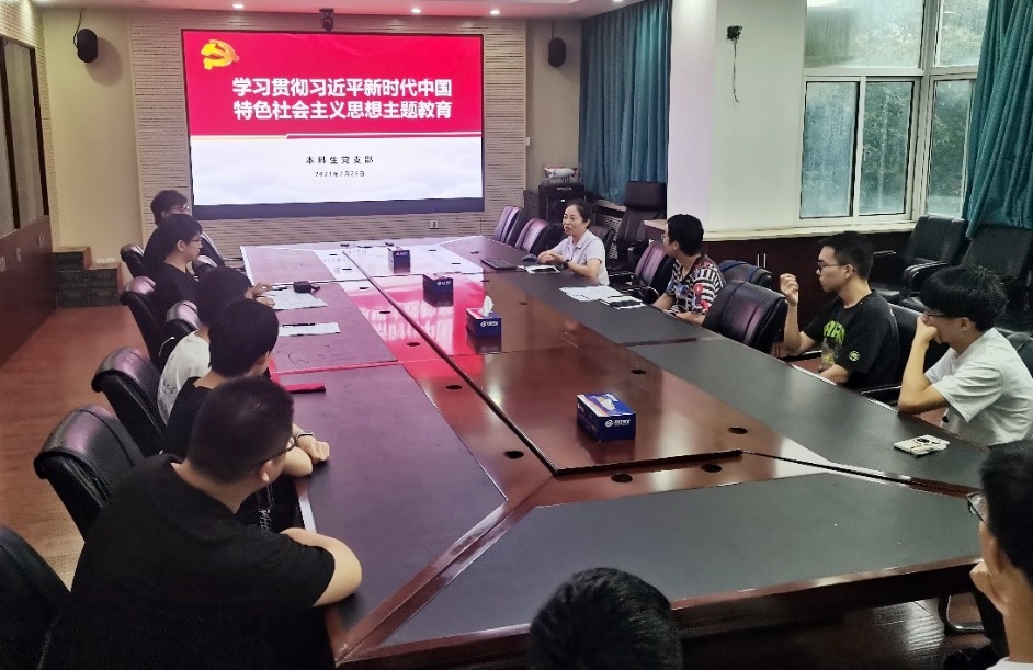 726日下午,本科生党支部召开学习贯彻习近平新时代中国特色社会主义思想主题教育专题学习会,院党委副书记牟玲结合党章学习讲专题党课。
