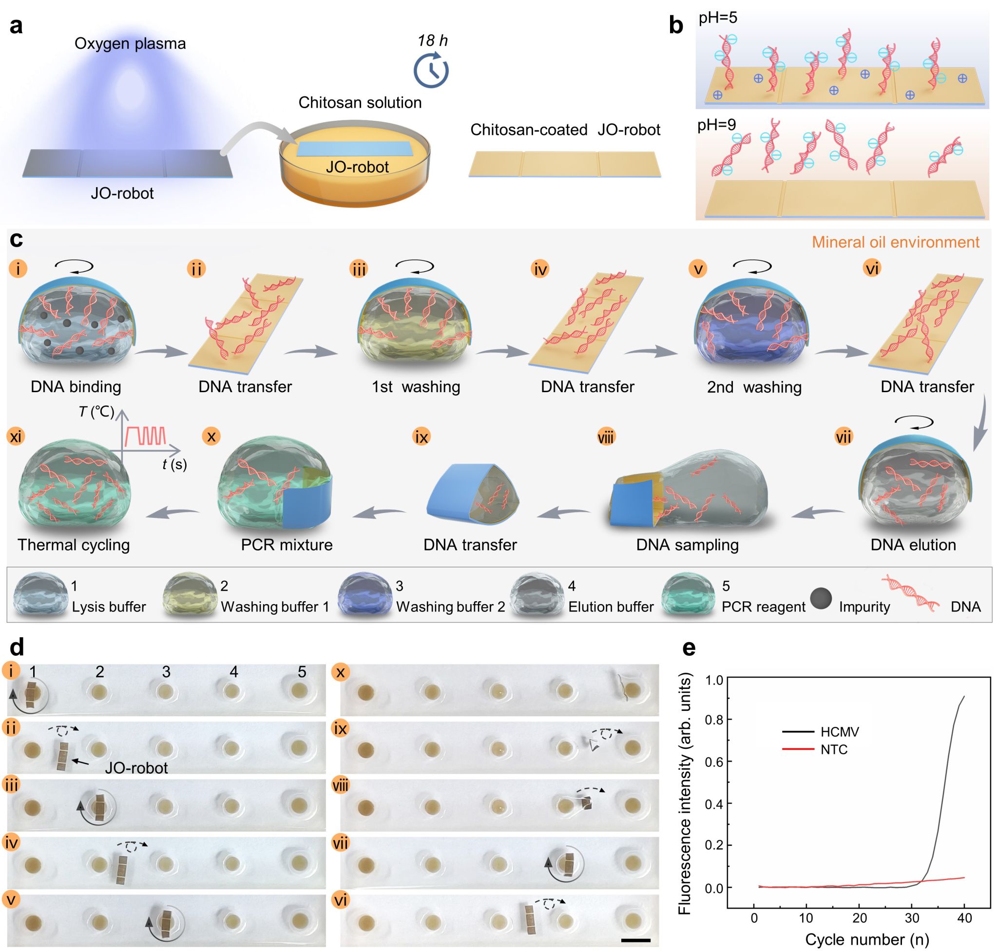 图3.基于磁响应双面神折纸机器人的核酸提取与纯化应用
