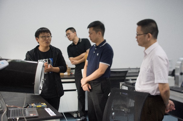 座谈会结束后,广东省生态环境监测中心和广东省广州生态环境监测中心站的领导团队参观了刘诚教授团队的超光谱遥感实验室,双方就目前研究的超光谱遥感仪器进行了现场交流。