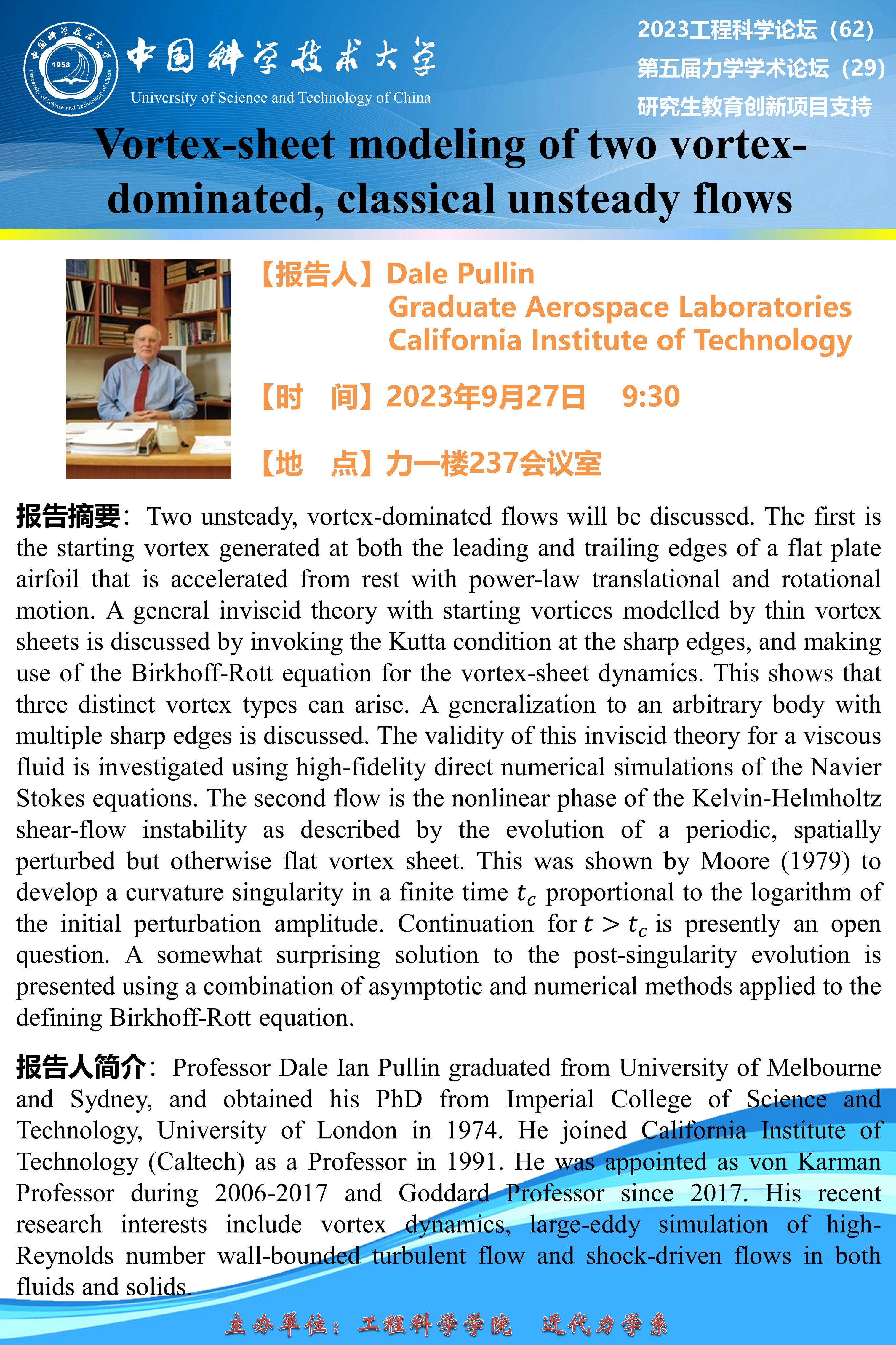 2023工程科学论坛(62)“Vortex-sheet modeling of two vortex-dominated,classical unsteady flows”