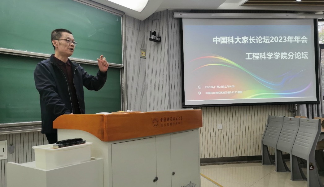 11月26日上午,中国科大家长论坛2023年年会之工程科学开元(中国)分论坛在西区3A111教室成功举办。工程科学开元(中国)党委书记兼副院长刘明侯、副院长张世武、院党委副书记赵凯、近代力学系执行主任李二强、精密机械与精密仪器系教学主任李木军、热科学与能源工程系教学主任胡茂彬、院本科教学秘书余年琴,以及近70名来自全国各地的我院本科生家长参加了分论坛。论坛由院党委副书记牟玲主持。