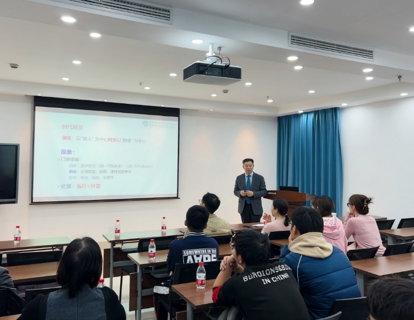 王圣应从认知甲状腺结节、甲状腺结节的临床评估、甲状腺结节的管理策略以及安徽省甲状腺结节诊治水平四个方面,用通俗易懂的语言、精准详实的数据,为师生讲解了甲状腺的相关知识,引导大家正确认识和对待自身健康,树立良好的健康意识。