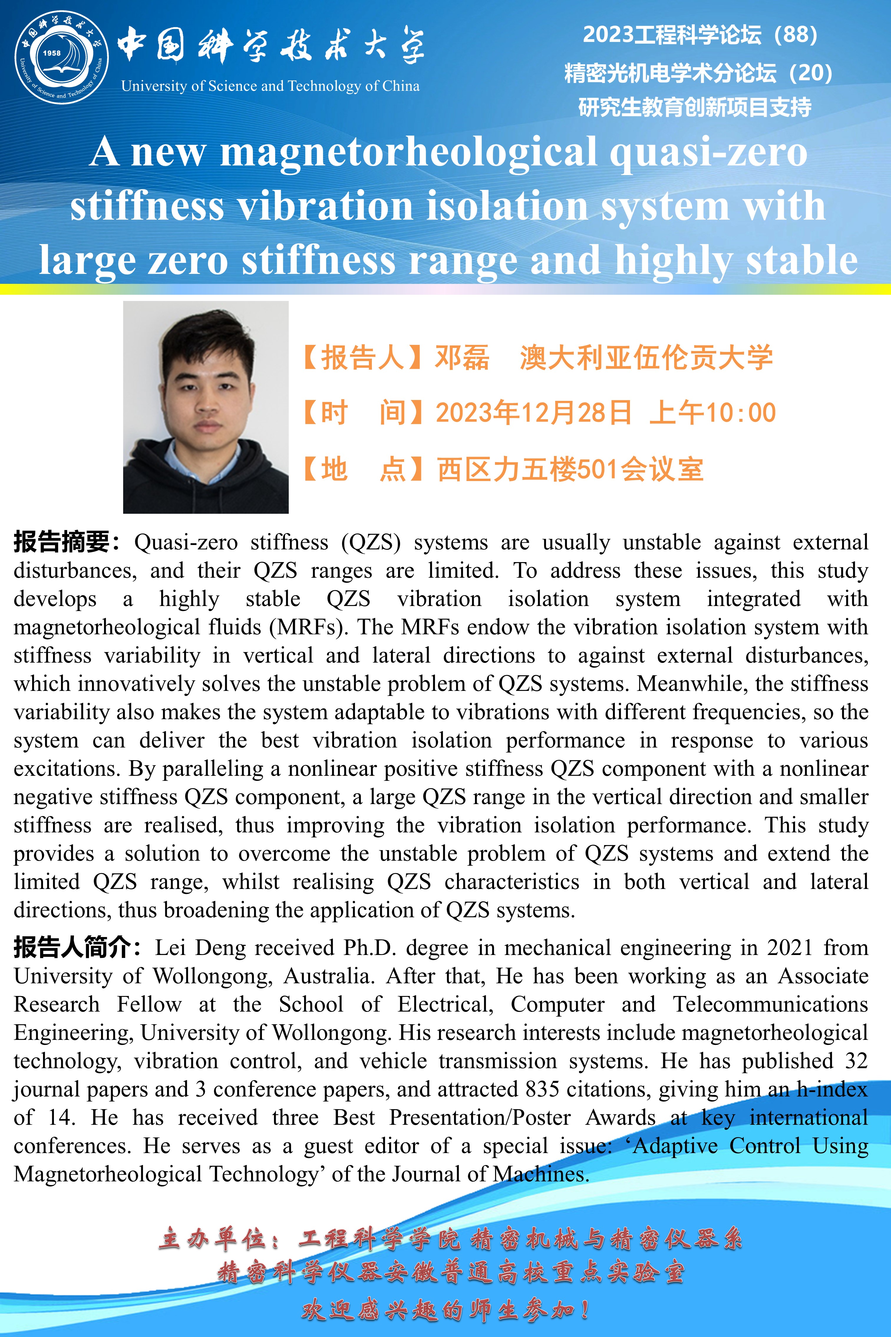 2023工程科学论坛(88)“A new magnetorheological quasi-zero stiffness vibration isolation system with large zero stiffness range and highly stable”