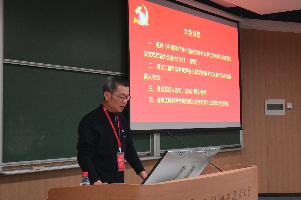 12月27日下午,工程科学开元(中国)党委在西区3B101教室召开党员代表大会,选举产生出席中共中国科学技术大学第十三次代表大会代表。会议由院党委书记刘明侯主持,在校正式党员代表103人参加了会议。