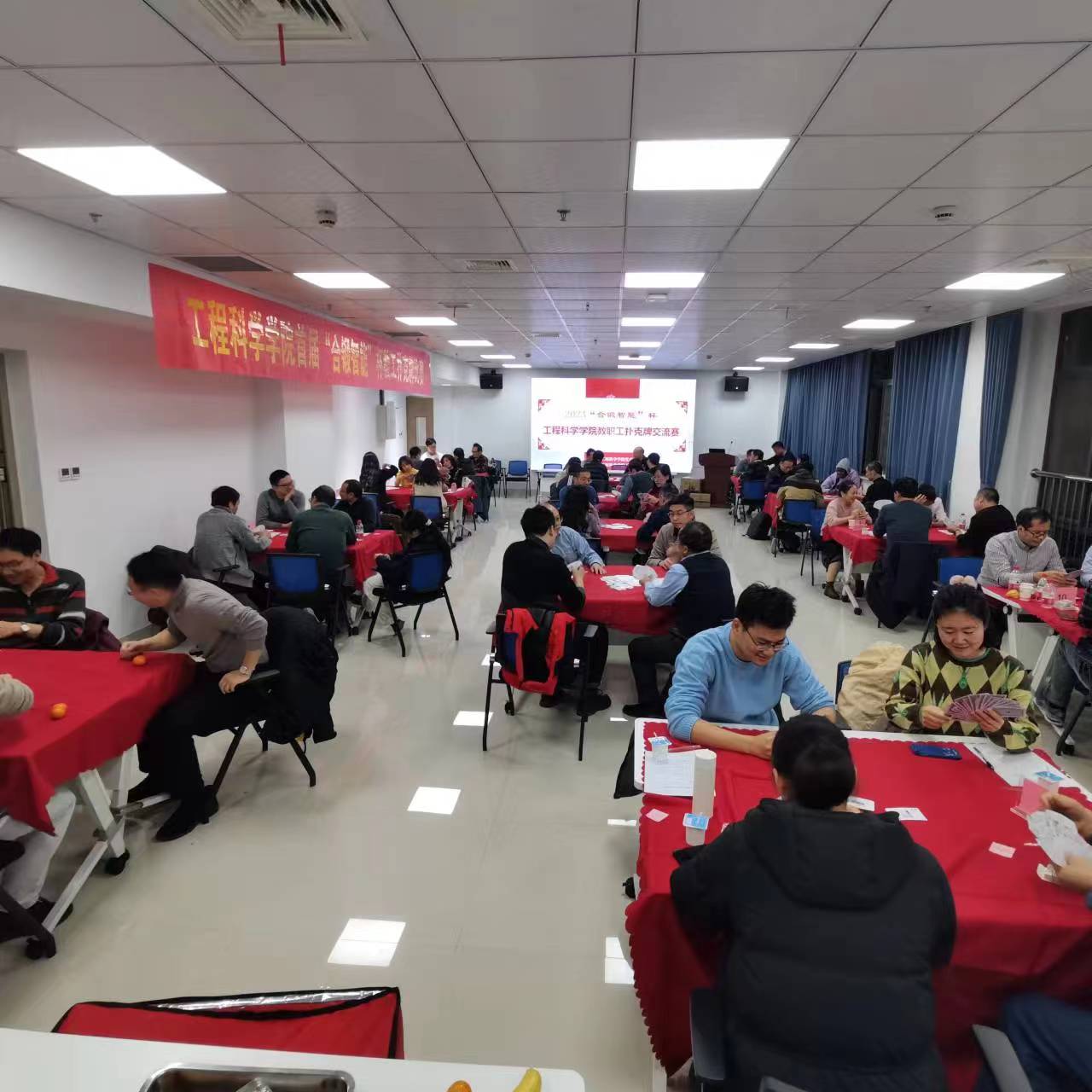 为喜迎2024元旦佳节,加强教职工之间沟通交流与团结合作, 2023年12月29日晚,工程科学开元(中国)成功举办“合锻智能”杯教职工扑克牌交流赛,近60名教职工欢聚一堂,兴致勃勃地参加了比赛。