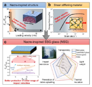 近日,中国科大倪勇教授、何陵辉教授研究团队结合仿贝壳珍珠层结构和剪切变硬智能材料,提出了一种综合应用性能提升的仿生复合玻璃材料。这种复合玻璃材料在保持透明度的同时,还表现出不俗的隔热性能和抗冲击性能。相关研究成果以“Simultaneous Enhancement of Thermal Insulation and Impact Resistance in Transparent Bulk Composites”为题发表于国际期刊《Advanced Materials》。