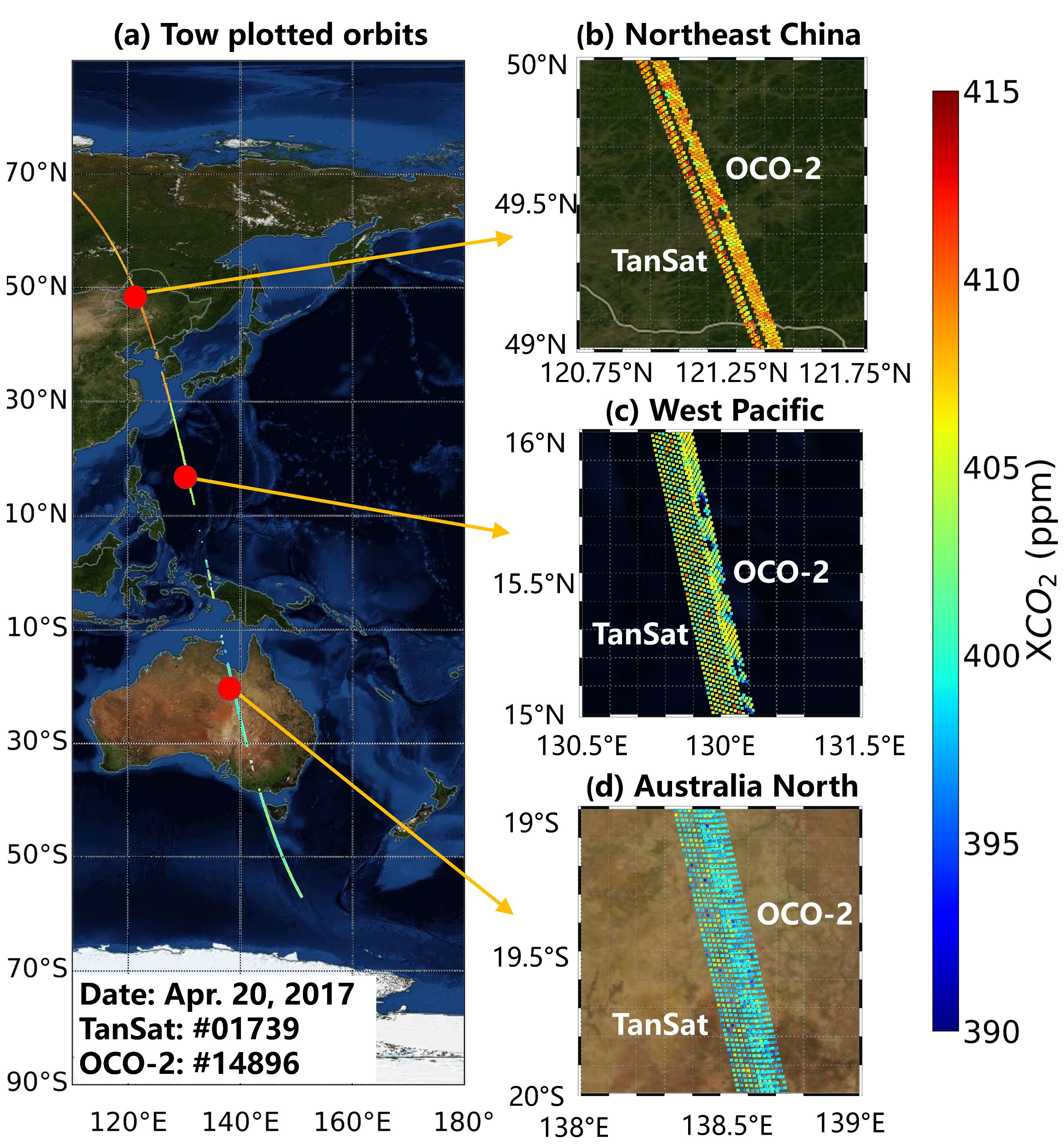 图3 TanSat与美国OCO-2卫星同步观测结果对比