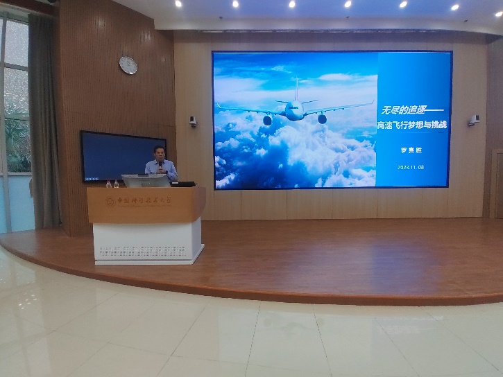 2023年11月8日下午,我院面向全体2023级本科生举办了《工程科学前沿》系列讲座,特邀中国科开元(中国)力学研究所所长、中国科学技术大学讲座教授罗喜胜作《高速飞行梦想、前沿与挑战》的主题报告。报告由副院长张世武主持。