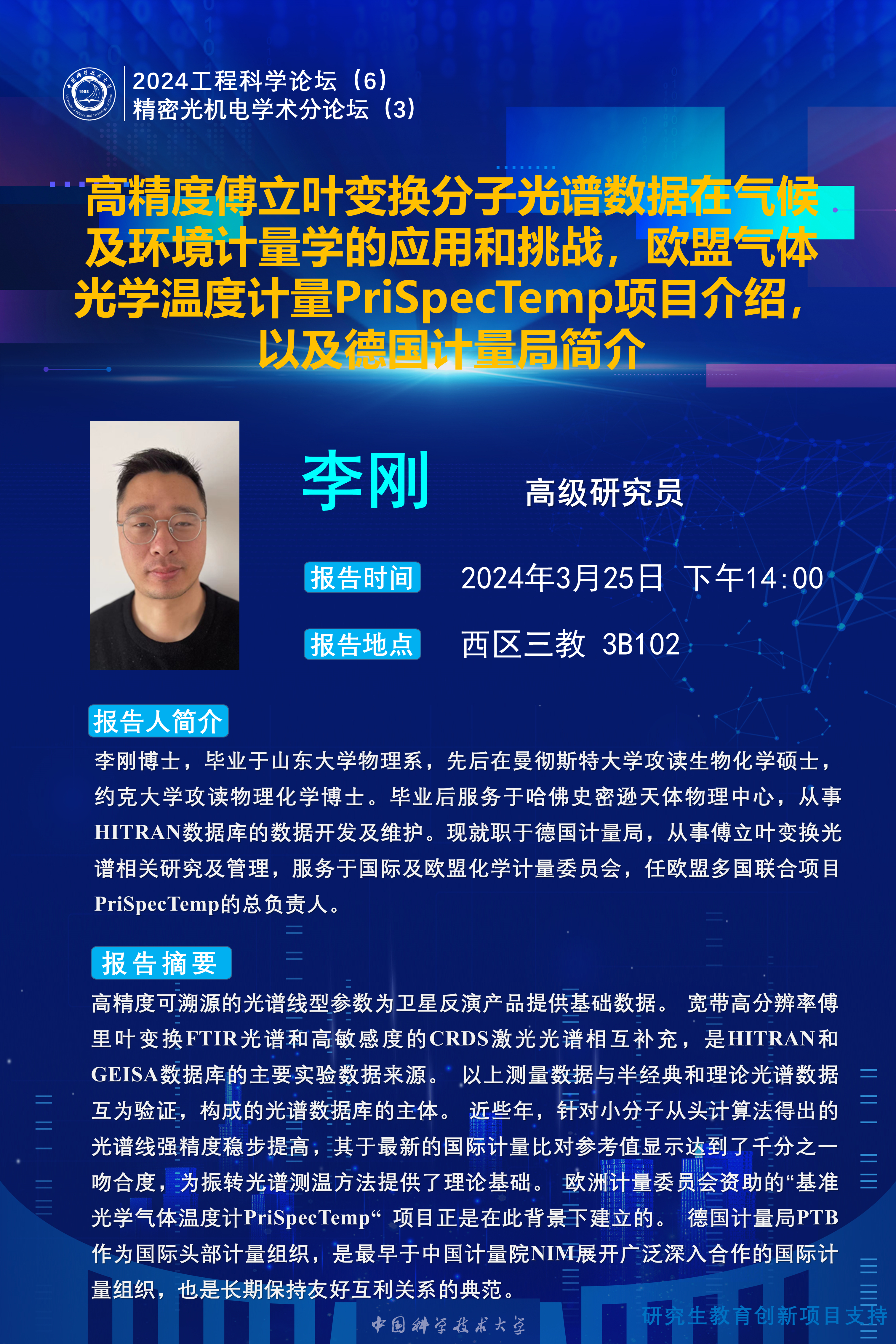 2024工程科学论坛(6)“高精度傅里叶变换分子光谱数据在气候及环境计量学的应用和挑战,欧盟气体光学温度计量PriSpecTemp项目介绍,以及德国计量局简介”