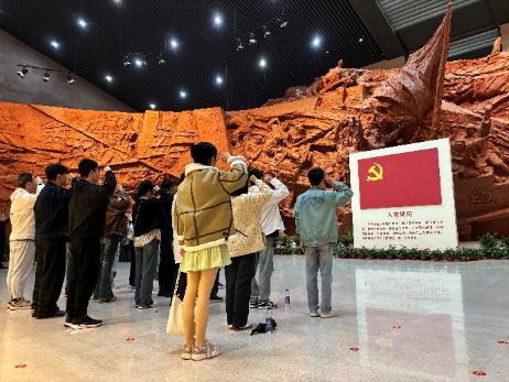 在渡江战役纪念馆,全体党员重温入党誓词。党员们用铿锵的誓言表达自己对党的赤诚忠心和为共产主义事业奋斗终身的坚定决心,进一步增强了自身的责任感和使命感。