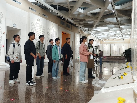 接着,大家依次参观了战前形势、战役准备、突破江防、战役胜利、人民支前和英烈业绩六大展厅。其间陈列的一张张图片、一件件文物,都传递出当年百万雄狮横渡长江的壮阔气魄,彰显出革命先烈伟大的渡江精神,深深感染了在场的同学。在烈士名录前,支部党员献上鲜花以寄托崇敬与哀思,时刻谨记吾辈当自强。