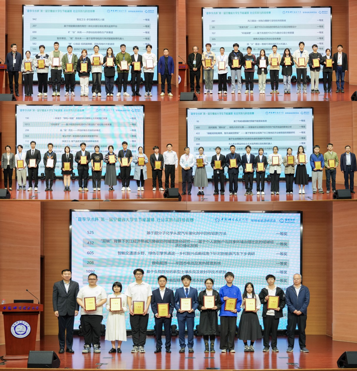 经过分组评审和竞赛委员会审议,《智巡卫士-多功能便携无人艇》等51件作品荣获第一届安徽省大学生节能减排社会实践与科技竞赛一等奖,《家“节”士——基于起电与离心技术的灰尘头发回收利用扫地机器人》等96件作品荣获二等奖。