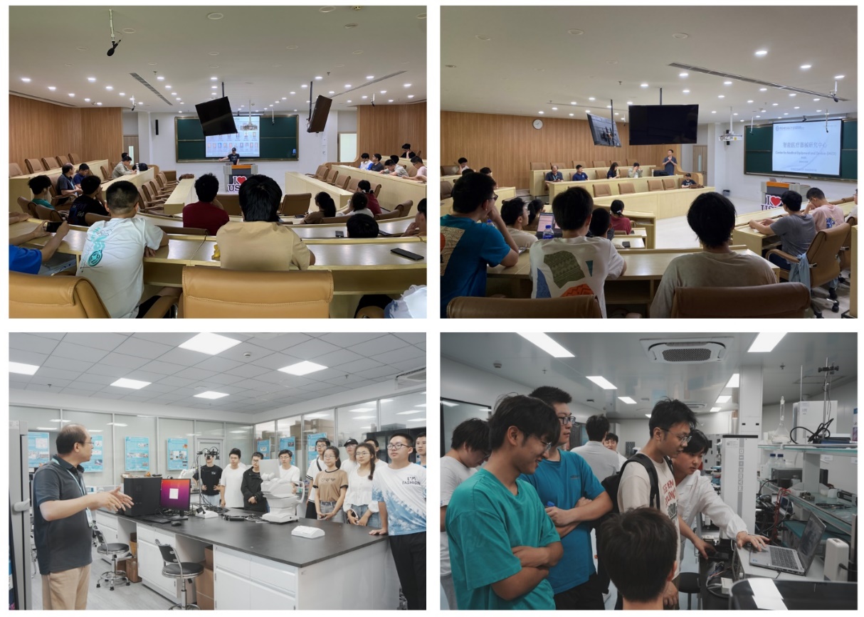 徐晓嵘部长与游尚挺研究员代表苏州高研院和iMED中心在明德楼报告厅欢迎同学们的到来,并介绍了iMED中心在生命医疗仪器与医疗器械方向的科研与教学工作。同学们在中心研究员和研究生的陪同与讲解下,到访生物先进制造、穿戴设备、神经形态电子、离电触觉、细胞分子传感、血管工程、数字骨科、眼科器械、心血管器械、生命合成、生殖器械、口腔器械、微纳制造前沿领域的实验室,进一步了解了当前的生命医疗仪器与医疗器械科学前沿进展和未来发展方向。