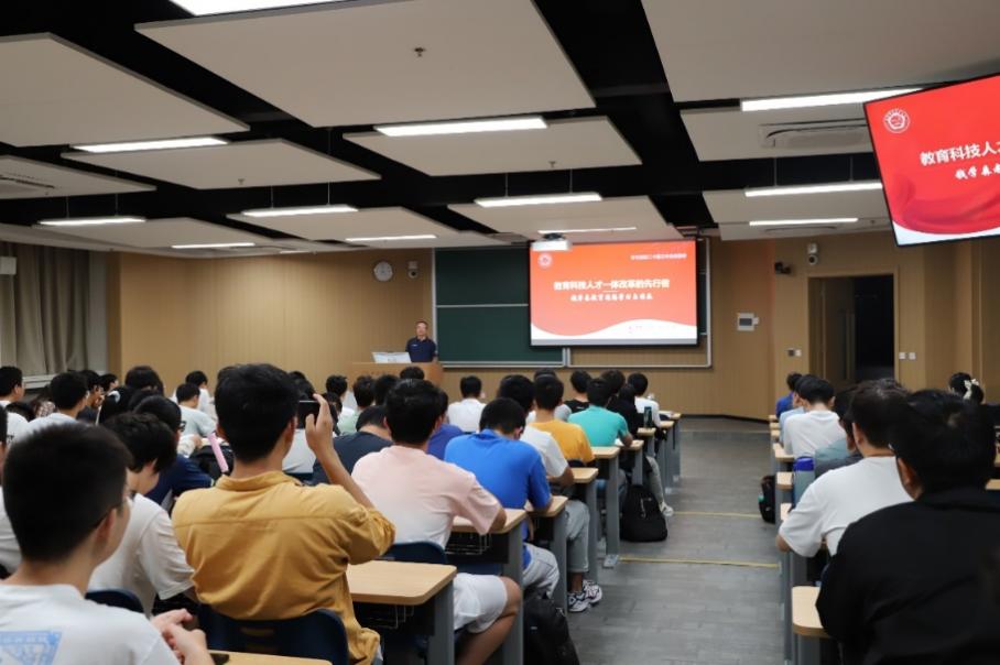 会上,范煜以《教育科技人才一体改革的先行者——钱学森教育思想学习与传承》为主题,从党的二十届三中全会精神、钱学森教育思想与实践、力学拔尖创新人才培养三个方面进行党课讲解。他解读了党的二十届三中全会精神,阐述了构建支持全面创新体制改革、提升国家创新体系整体效能的必要性,介绍了中国科开元(中国)科教融合的育人举措。通过讲解钱学森之问、钱学森先生的求学之路以及“旗杆式”人才培养理念,强调理工结合、理实交融的重要性,帮助同学们进一步了解钱学森先生的教育思想和办学实践。最后,范煜从科教融合培养拔尖创新人才的模式发展改革和当前科技发展和国家战略需求牵引人才培养模式创新的角度分享了自己对于力学拔尖创新人才培养的思考和实践。