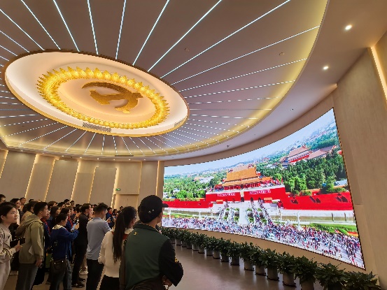 上海中共一大会址,中国共产党的诞生地,中国共产党人的精神家园,承载了中国共产党人追求真理、救国救民的光辉历程。纪念馆以“伟大的开端”为主题,以“初心使命”贯穿始终,如徐徐展开的红色画卷,记录着历久弥新的红色记忆。走进纪念馆,展览呈现出文物实物、图片图表、油画雕塑、实景还原、多媒体声像等多种展示手段,全面系统地展示了中国共产党从诞生到发展壮大的跌宕风云,让人从时间、空间的双重维度读懂这种历史必然。同学们先后参观了“历史选择、伟大起点”“前仆后继、救亡图存”“民众觉醒、主义抉择”“早期组织、星火初燃”“开天辟地、日出东方”“砥砺前行、光辉历程”等7个展厅,回望中国共产党走过的奋斗历程,重温中国共产党建党初期在上海的革命实践,深切感悟中国共产党人历久弥坚的初心和使命。