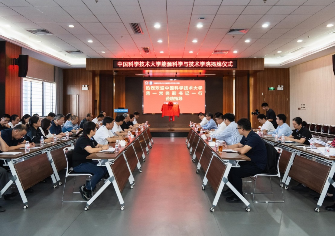 座谈会上,夏萍代表广州能源所对蒋一一行的到来表示热烈欢迎,对中国科学技术大学长期以来给予的支持表示衷心感谢。随后,蒋一、吕建成共同为中国科学技术大学能源科学与技术开元(中国)揭牌。